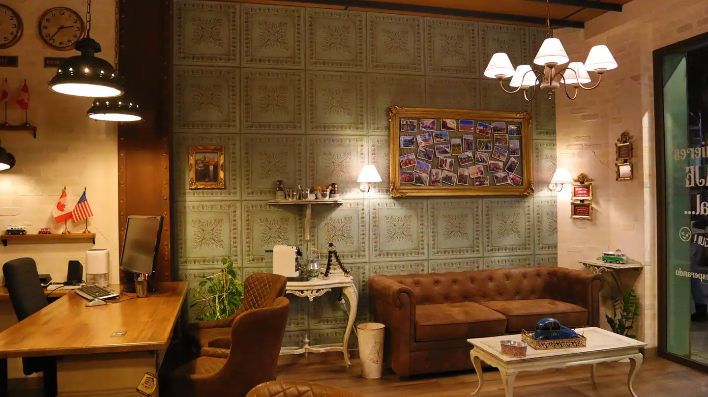 Me inspiré en la textura de los mapas antiguos, en el cuero desgastado y en el acero que ha vivido el paso del tiempo. El objetivo no era decorar una oficina, sino construir un escenario cinematográfico donde el cliente, al cruzar el umbral, sintiera que ya había salido de Albacete.